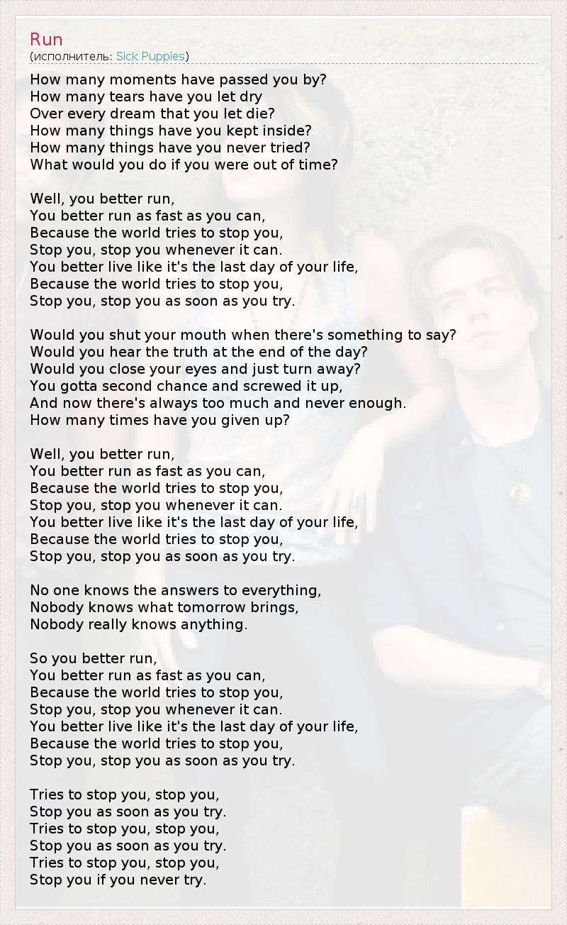 А как ты думаешь, о чем песня "Run" ?