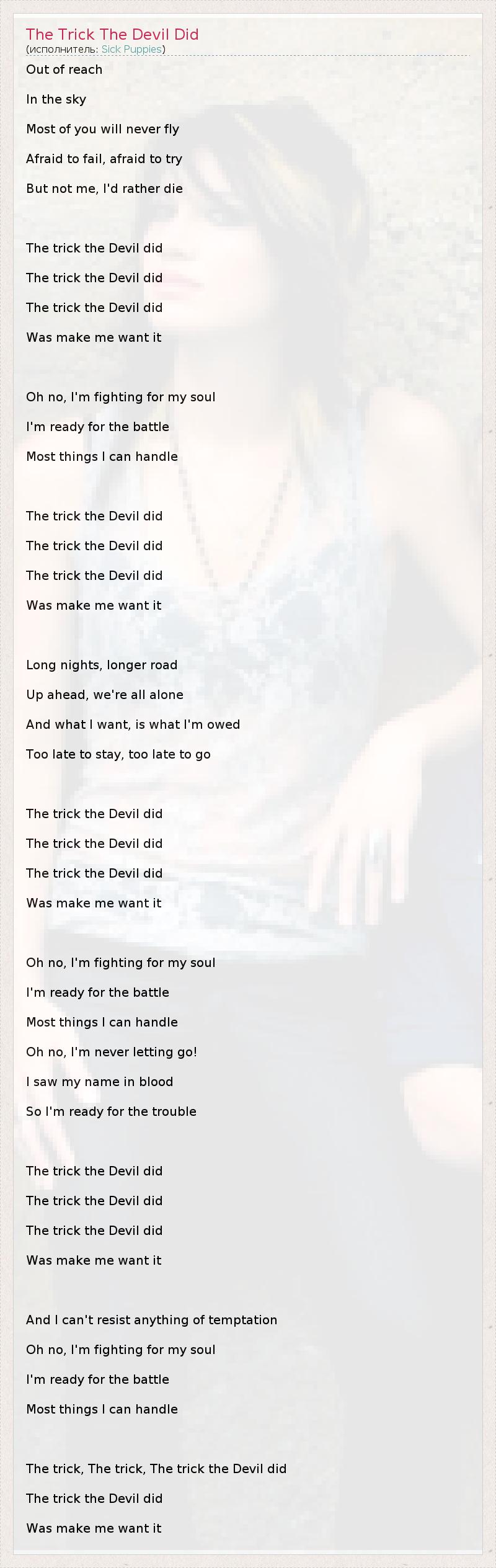 А как ты думаешь, о чем песня "The Trick The Devil Did" ?