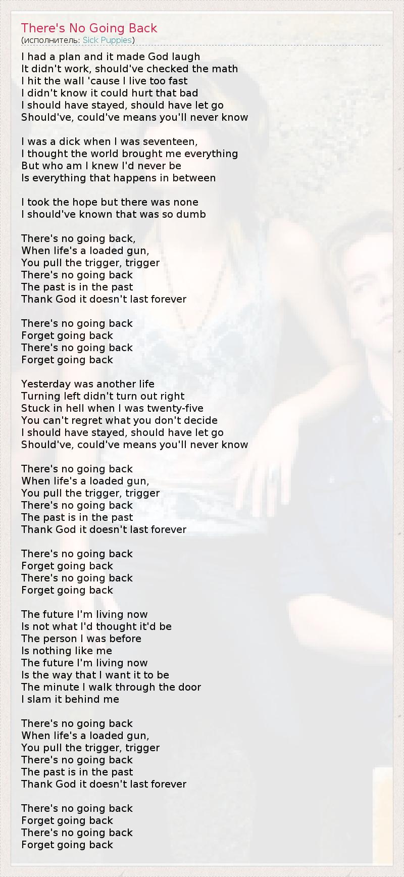 А как ты думаешь, о чем песня "There's No Going Back" ?