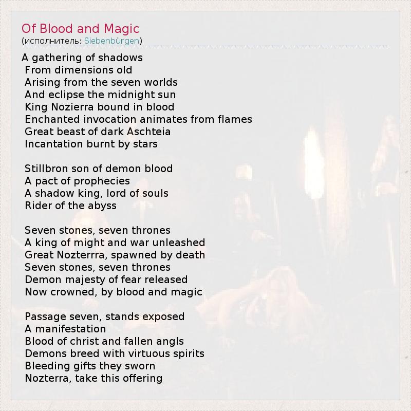 А как ты думаешь, о чем песня "Of Blood and Magic" ?
