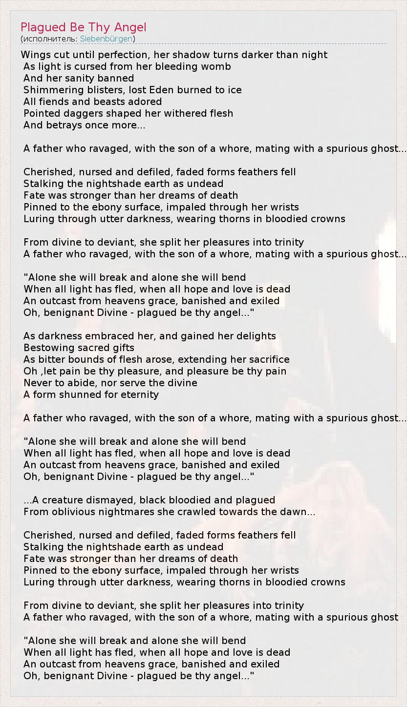 А как ты думаешь, о чем песня "Plagued Be Thy Angel" ?