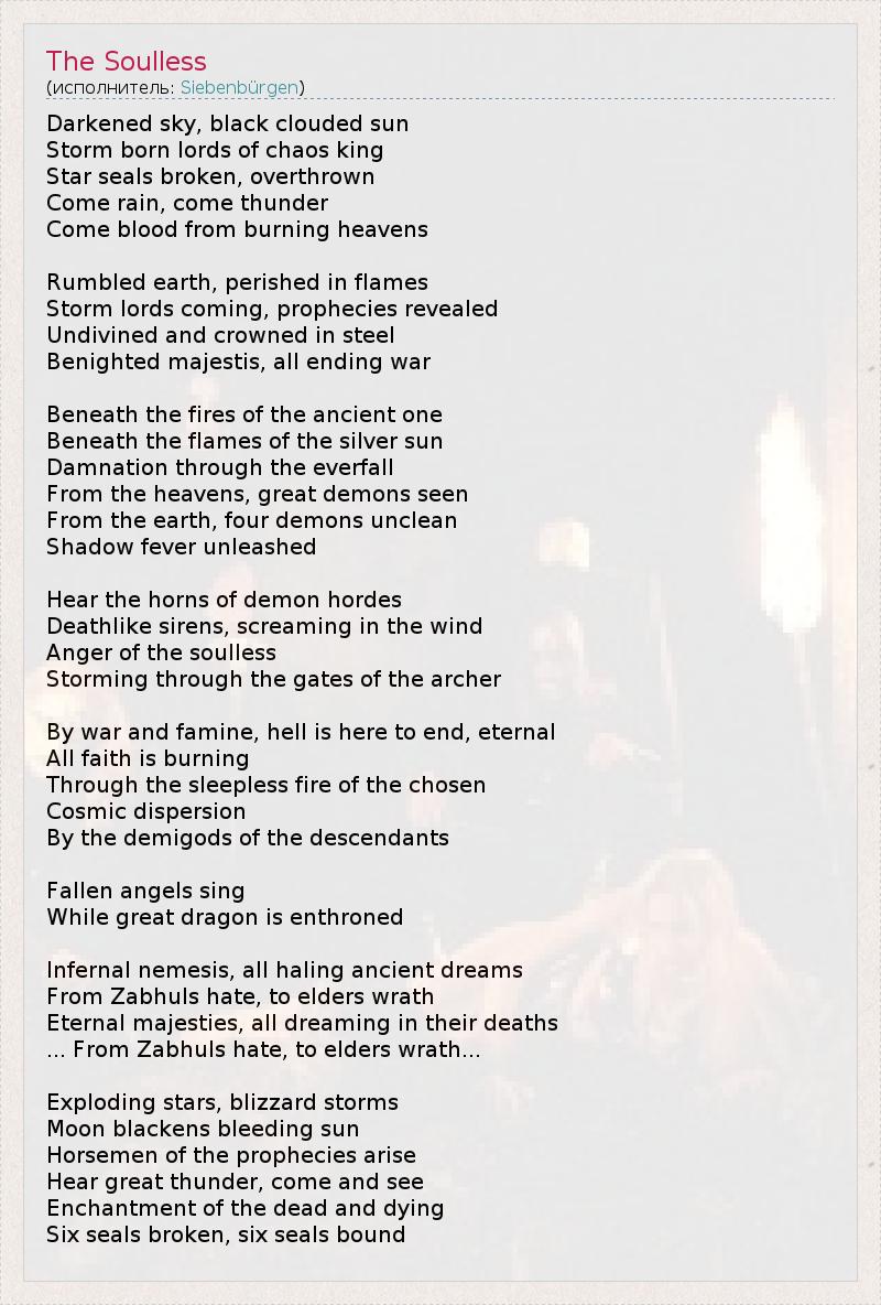 Это интересно:Группа Siebenbürgen была создана Marcus Ehlin и Anders Rosdahl в 1994 году. Через несколько месяцев появился Fredrik Brockert. О названии (и далее — цитаты из интервью с Маркусом):"По правде, это моя бывшая подружка подкинула нам идею. Полагаю, что это подходило нам как нельзя лучше, учитывая нашу излюбленную вампирскую тематику в лирике, которую мы тогда писали сугубо на шведском. Siebenbürgen — пару сотен лет назад... продолжение