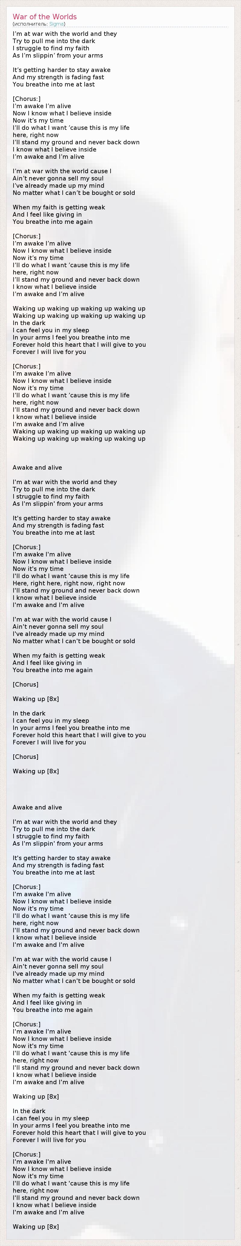 Я проснулся, я живой (перевод Артём Антонов из Новокузнецка)