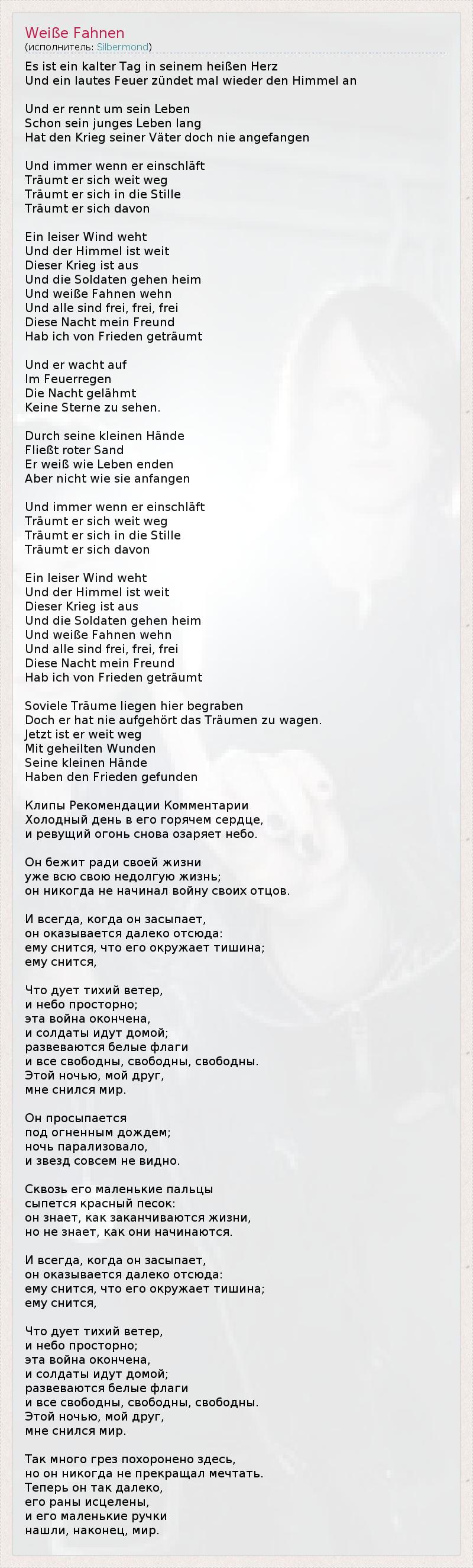 А как ты думаешь, о чем песня "Weiße Fahnen" ?