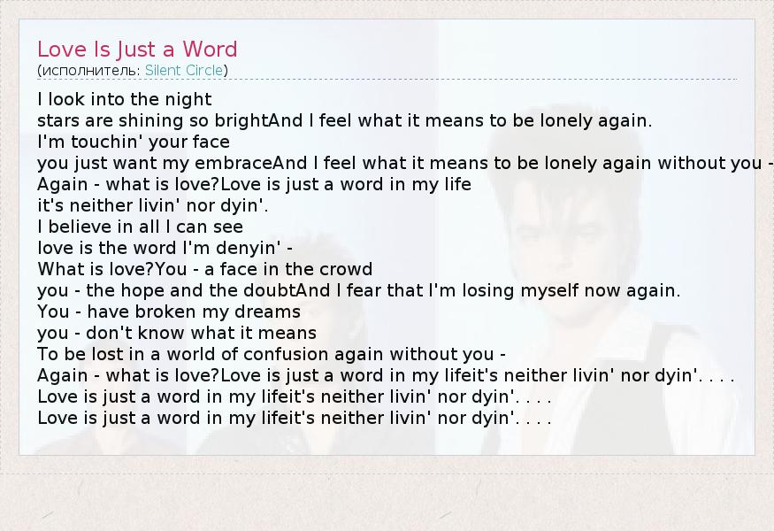 А как ты думаешь, о чем песня "Love Is Just a Word" ?