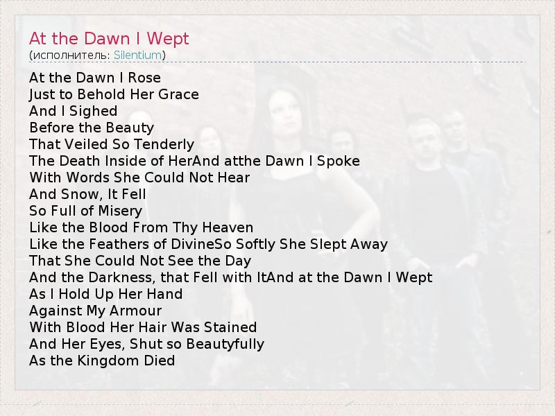 А как ты думаешь, о чем песня "At the Dawn I Wept" ?