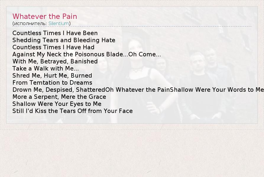 А как ты думаешь, о чем песня "Whatever the Pain" ?