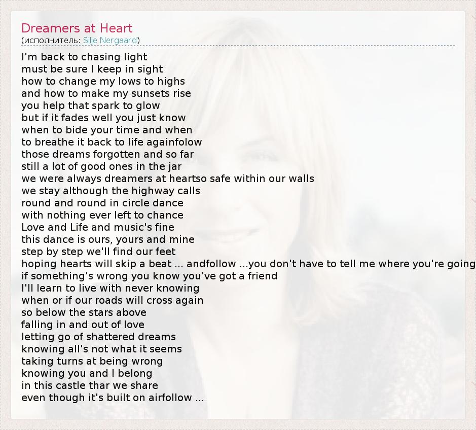 А как ты думаешь, о чем песня "Dreamers at Heart" ?