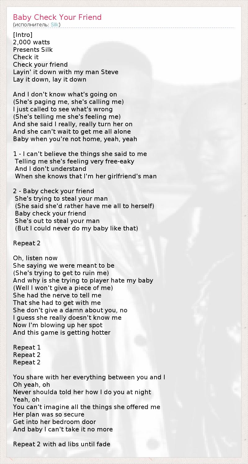 А как ты думаешь, о чем песня "Baby Check Your Friend" ?
