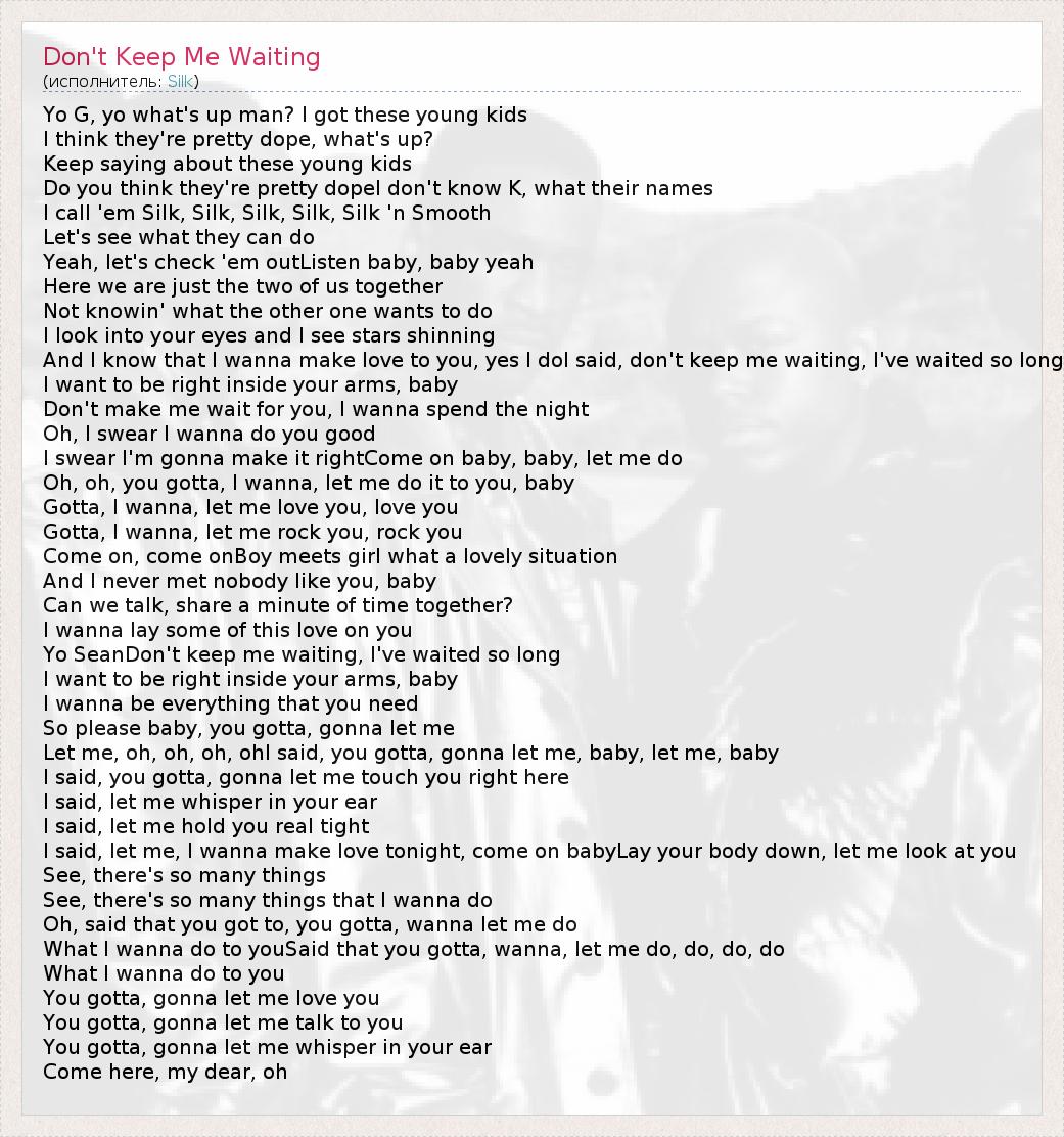 А как ты думаешь, о чем песня "Don't Keep Me Waiting" ?