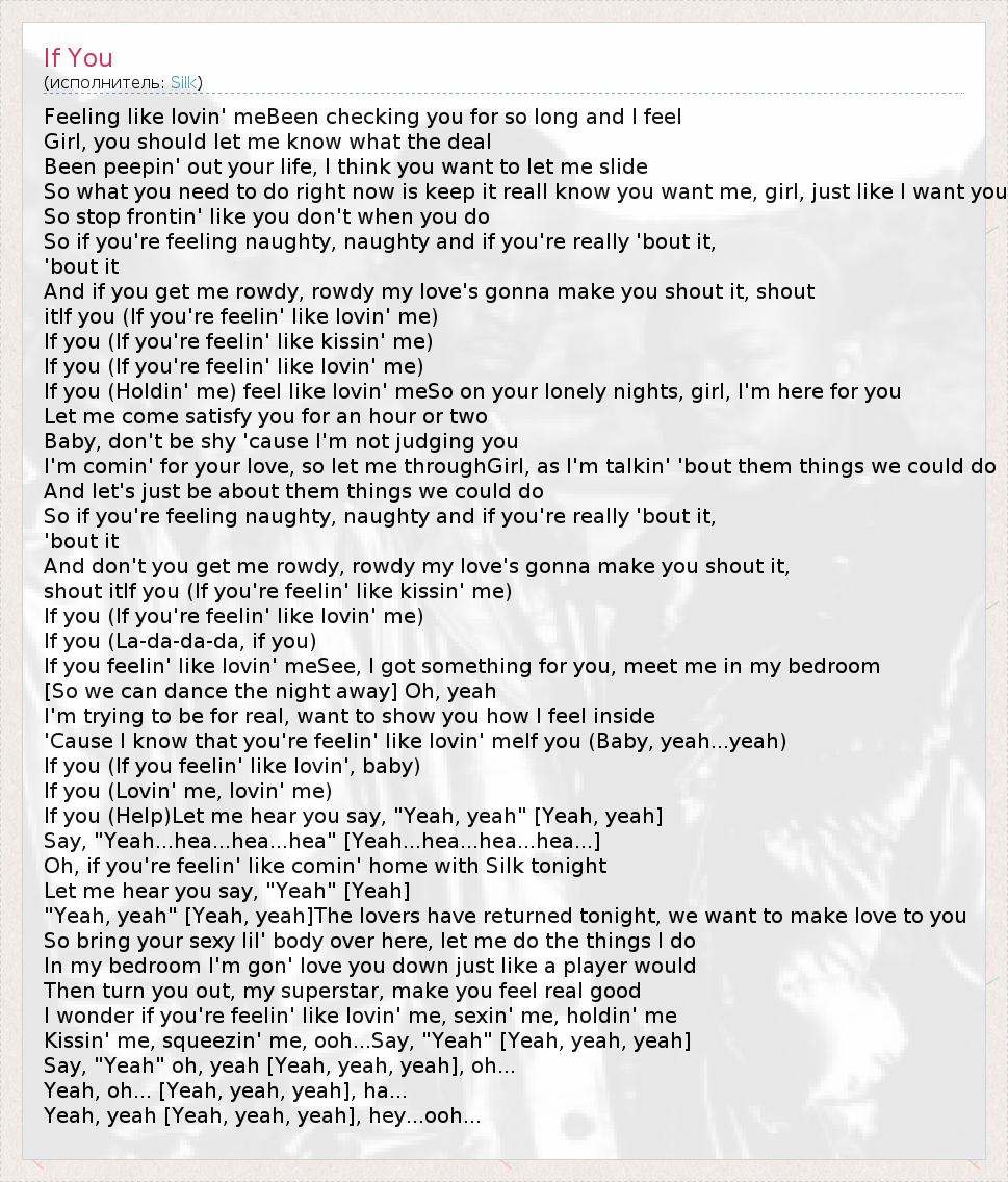 'Cause I know that you're feelin' like lovin' meIf you (Baby, yeah...yeah)