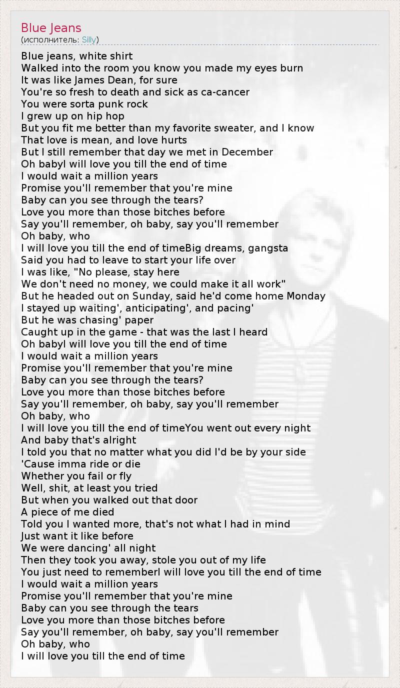 А как ты думаешь, о чем песня "Blue Jeans" ?
