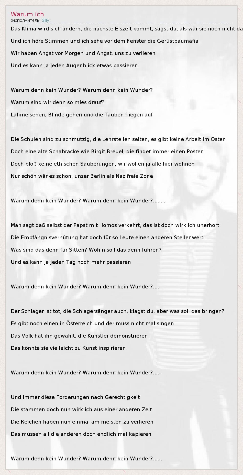 Warum denn kein Wunder? Warum denn kein Wunder?......