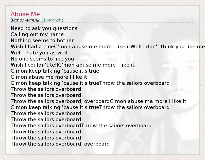 А как ты думаешь, о чем песня "Abuse Me" ?