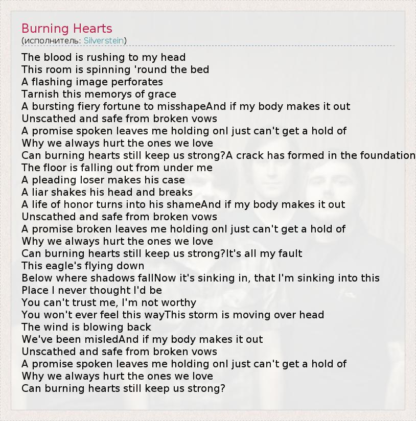А как ты думаешь, о чем песня "Burning Hearts" ?