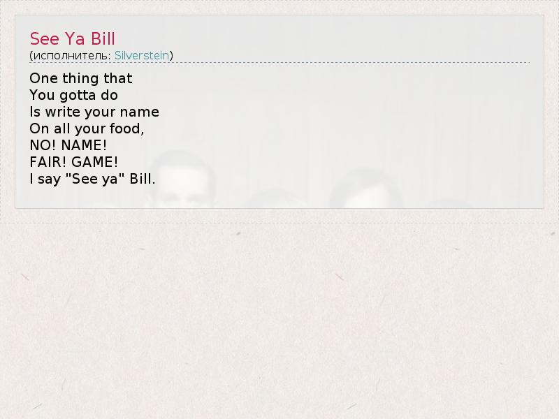 А как ты думаешь, о чем песня "See Ya Bill" ?