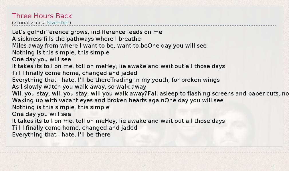А как ты думаешь, о чем песня "Three Hours Back" ?