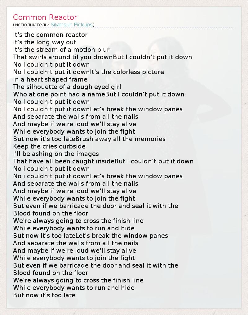 А как ты думаешь, о чем песня "Common Reactor" ?