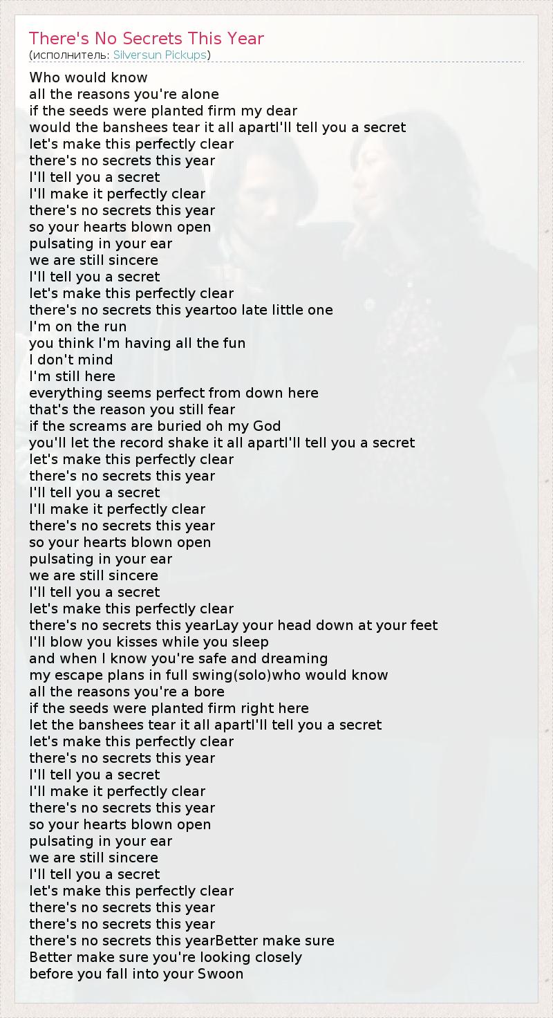 ГлавнаяИсполнителиSilversun PickupsThere's No Secrets This Year