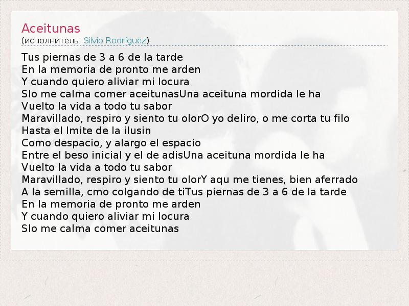 А как ты думаешь, о чем песня "Aceitunas" ?