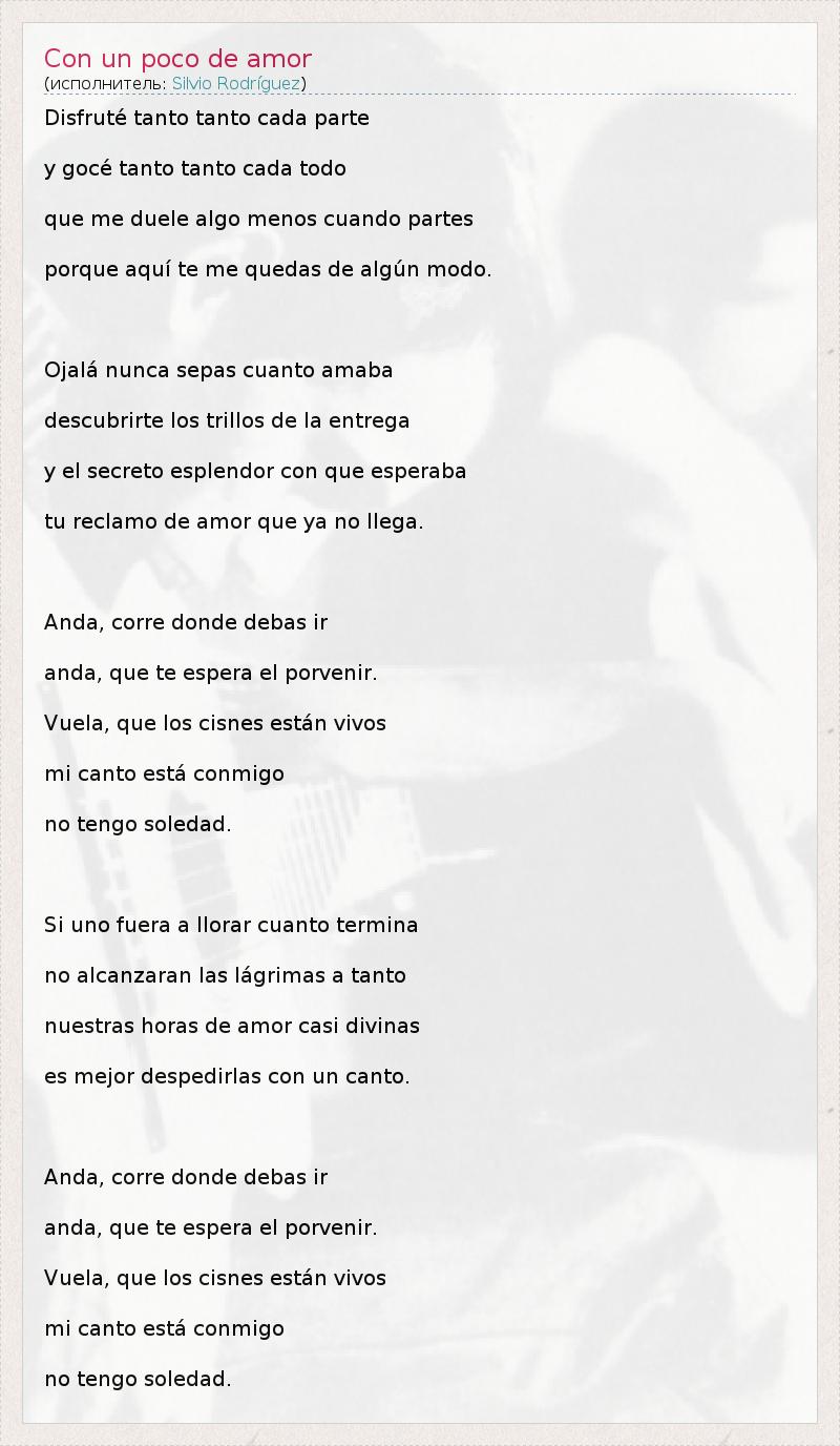 А как ты думаешь, о чем песня "Con un poco de amor" ?