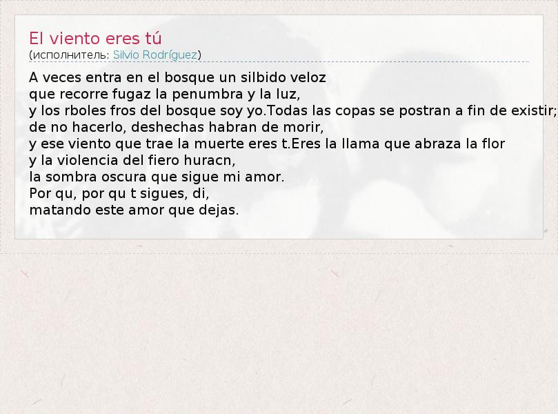 А как ты думаешь, о чем песня "El viento eres tú" ?