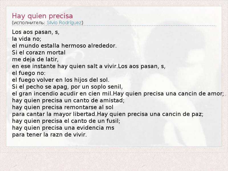 А как ты думаешь, о чем песня "Hay quien precisa" ?