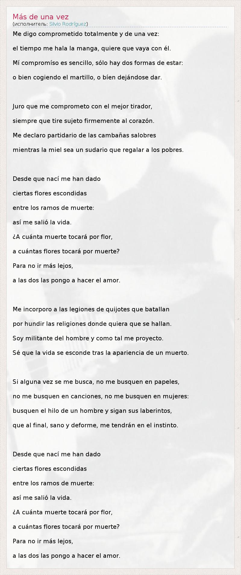А как ты думаешь, о чем песня "Más de una vez" ?