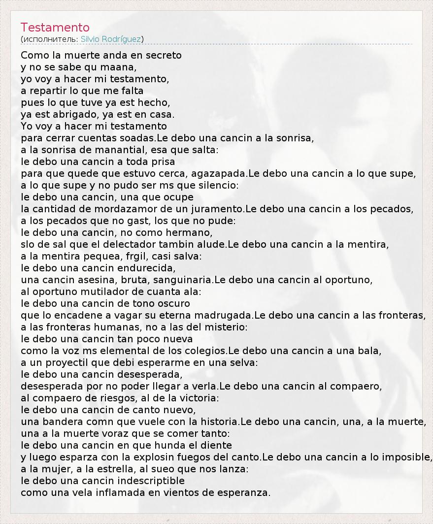Это интересно:Си́львио Родри́гес Доми́нгес (исп. Silvio Rodríguez Domínguez; Сан-Антонио-де-Лос-Баньос, Куба, 29 ноября 1946) — кубинский музыкант, поэт и певец, oдин из основателей (наряду с Ноэлем Николой и Пабло Миланесом) кубинского песенного движения Новая Трова.За более чем 40 лет поэтического и музыкального творчества Сильвио Родригес написал огромное количество песен (от 600 до 1000, точная цифра неизвестна),... продолжение