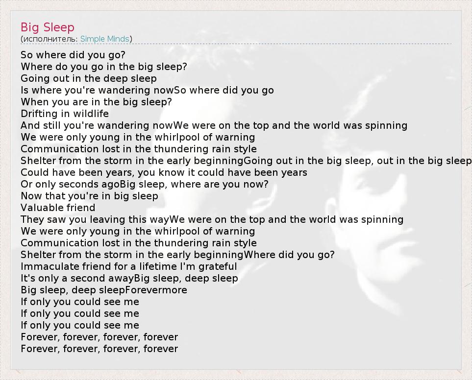 А как ты думаешь, о чем песня "Big Sleep" ?