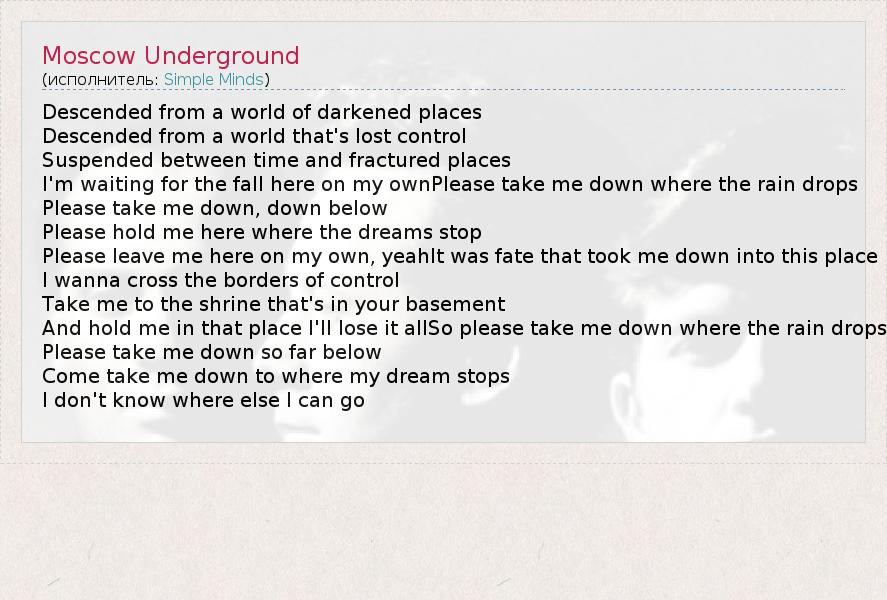 А как ты думаешь, о чем песня "Moscow Underground" ?