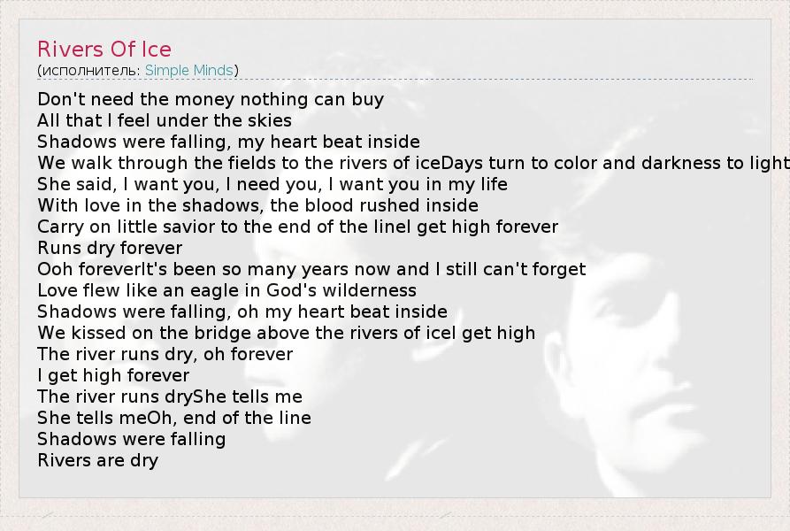 А как ты думаешь, о чем песня "Rivers Of Ice" ?
