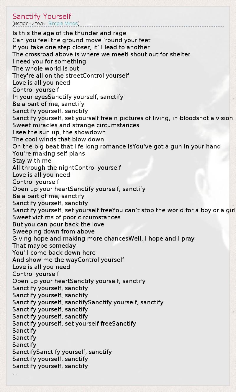 А как ты думаешь, о чем песня "Sanctify Yourself" ?