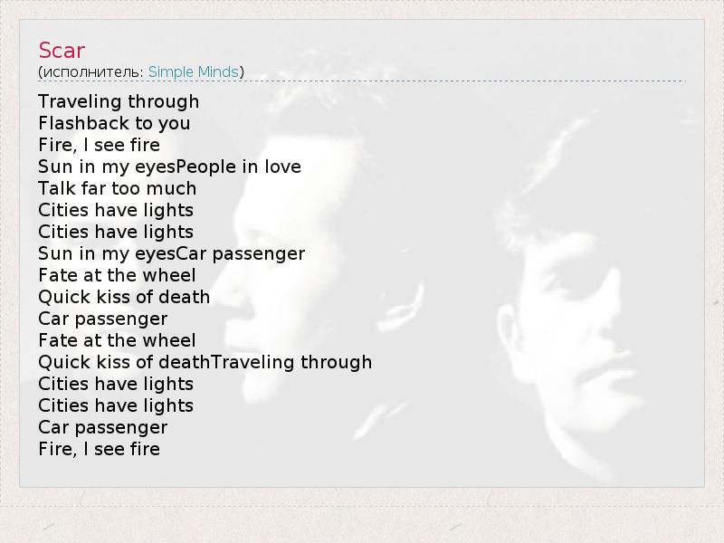 Это интересно:Simple Minds — образованная в 1978 году в Глазго шотландская рок-группа, которая в течение 1980-х эволюционировала от звучания в духе «новой волны» (поначалу их часто сравнивали с Duran Duran) к эпическому стадионному року, больше напоминающему U2. В середине 1980-х зачастую выступали вместе с The Pretenders, поскольку вокалисты этих команд, Джим Керр и Кристи Хайнд, состояли в браке. Их самым крупным хитом была... продолжение
