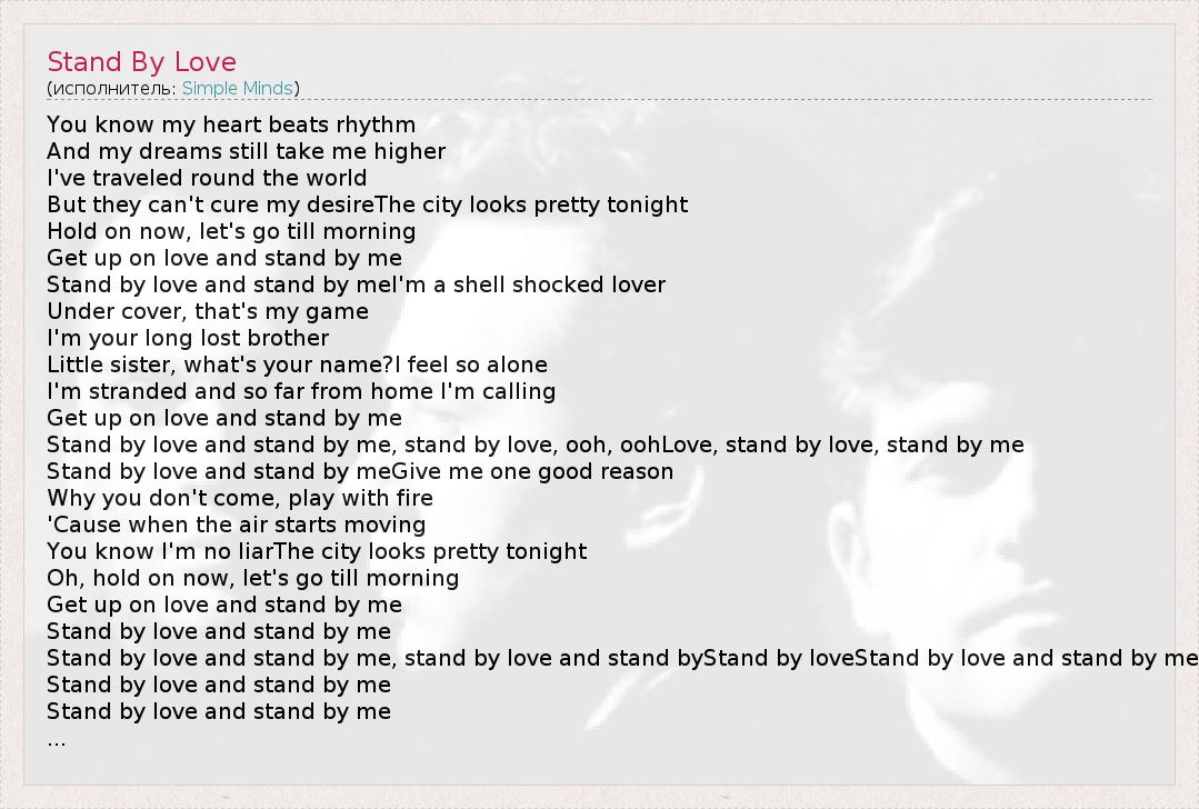 Stand by love and stand by me, stand by love and stand byStand by loveStand by love and stand by me