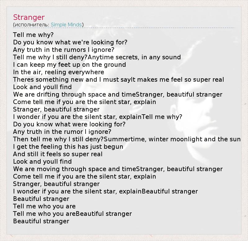 А как ты думаешь, о чем песня "Stranger" ?