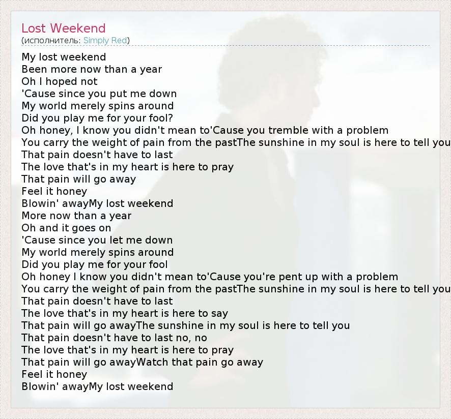 А как ты думаешь, о чем песня "Lost Weekend" ?