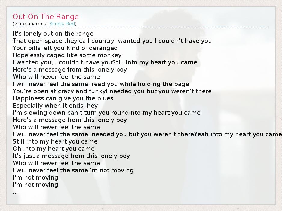 А как ты думаешь, о чем песня "Out On The Range" ?