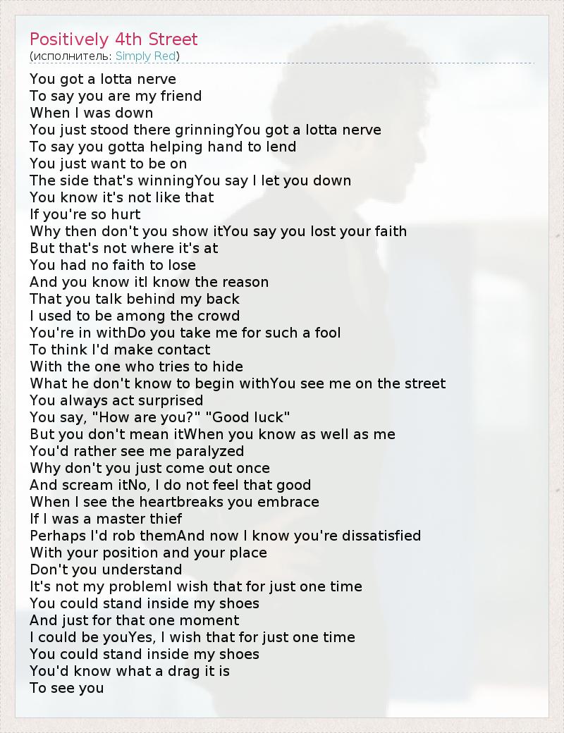 А как ты думаешь, о чем песня "Positively 4th Street" ?