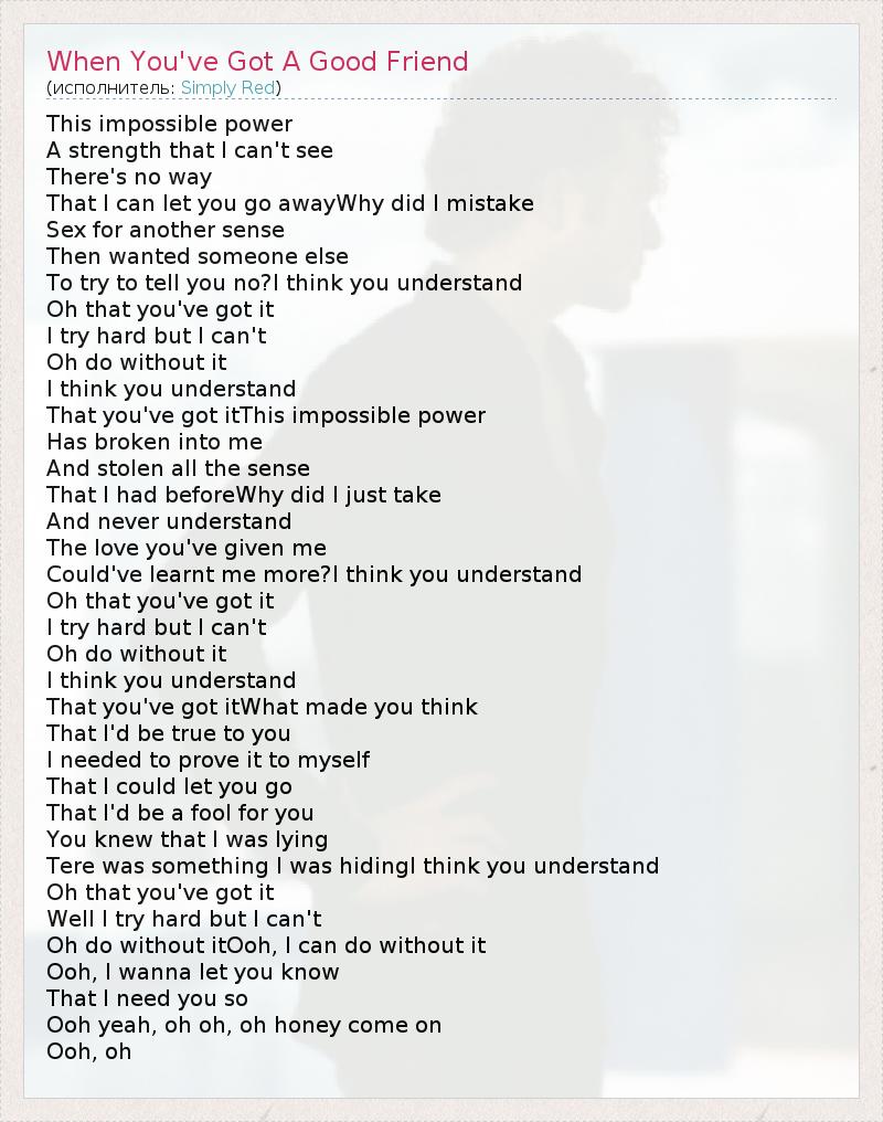 А как ты думаешь, о чем песня "When You've Got A Good Friend" ?