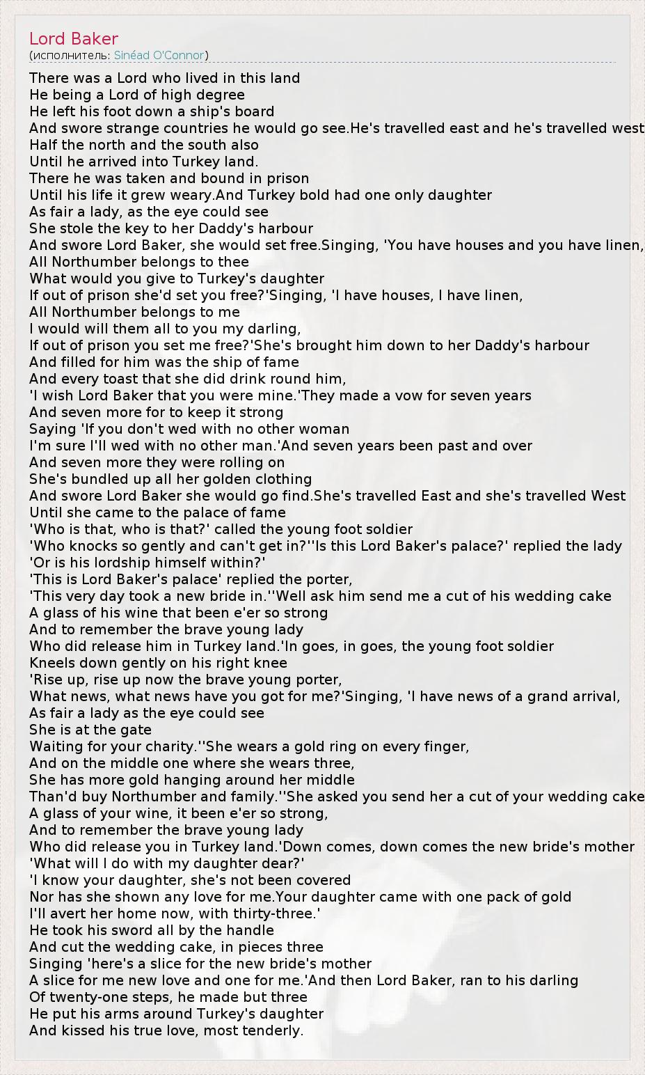 А как ты думаешь, о чем песня "Lord Baker" ?