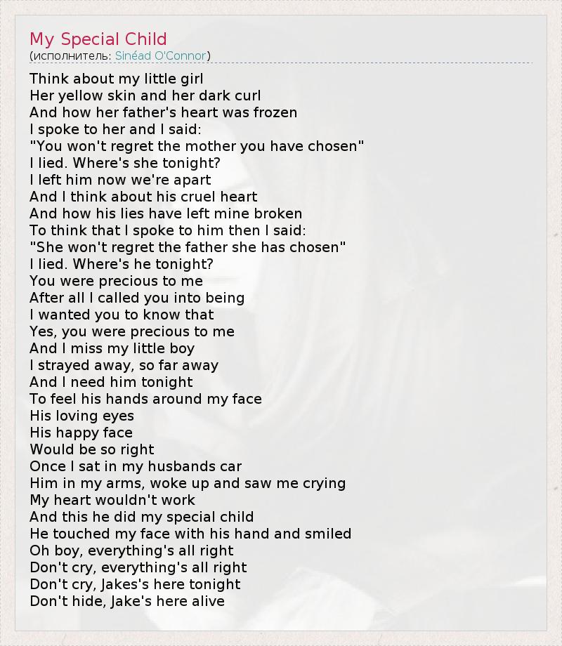 А как ты думаешь, о чем песня "My Special Child" ?