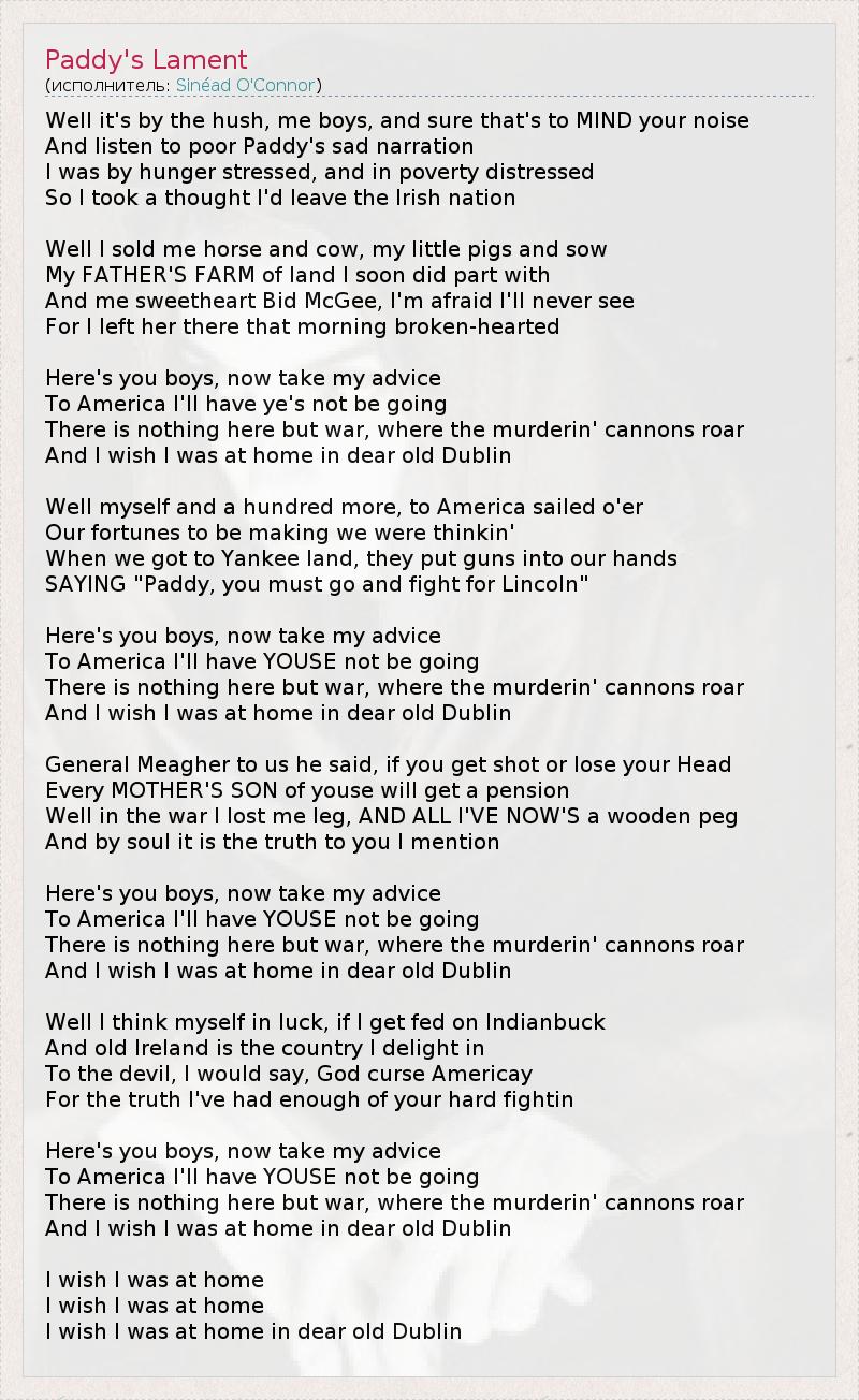 А как ты думаешь, о чем песня "Paddy's Lament" ?