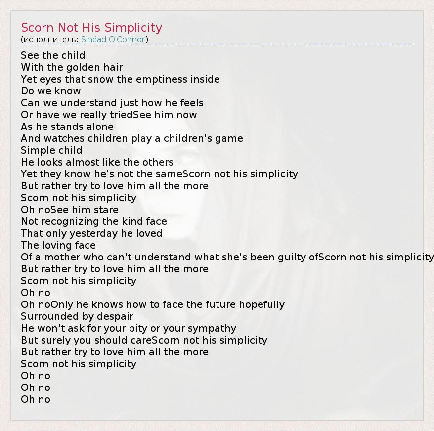 А как ты думаешь, о чем песня "Scorn Not His Simplicity" ?