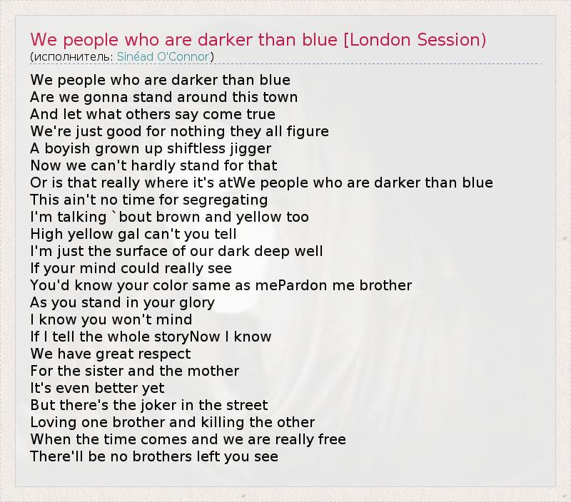 А как ты думаешь, о чем песня "We people who are darker than blue [London Session)" ?
