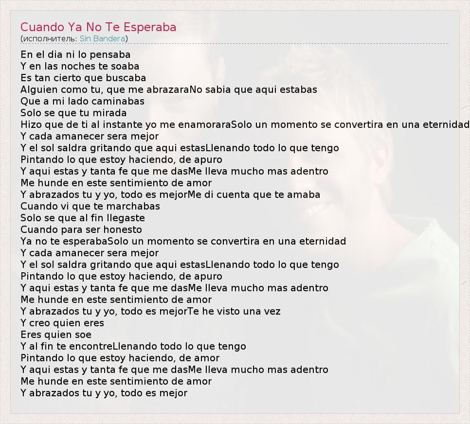 ГлавнаяИсполнителиSin BanderaCuando Ya No Te Esperaba