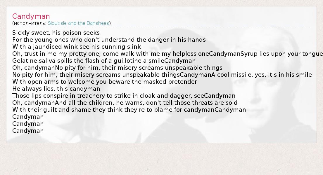 А как ты думаешь, о чем песня "Candyman" ?