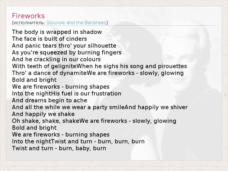 Thro' a dance of dynamiteWe are fireworks - slowly, glowing