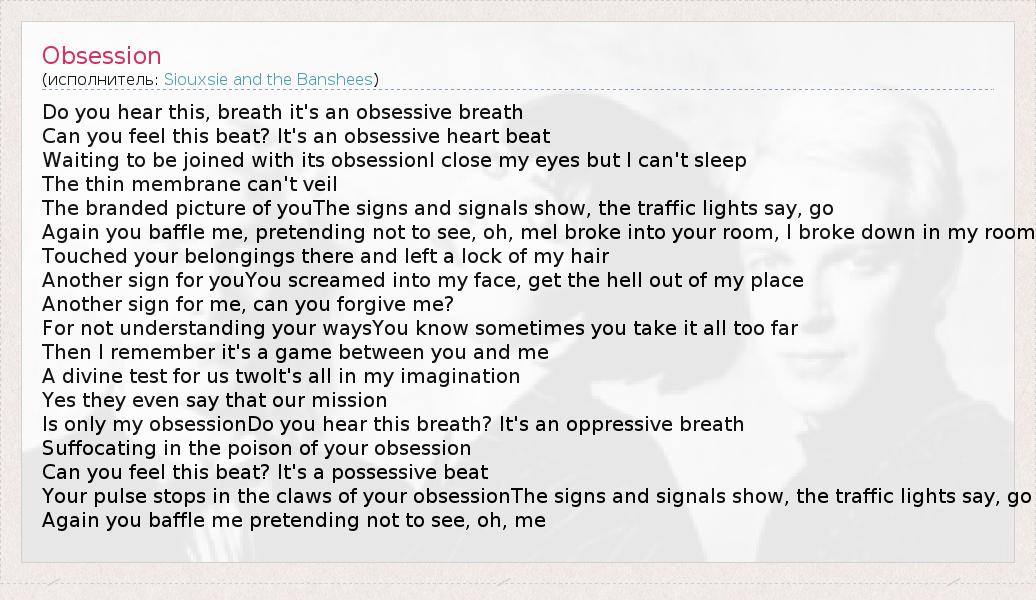 А как ты думаешь, о чем песня "Obsession" ?