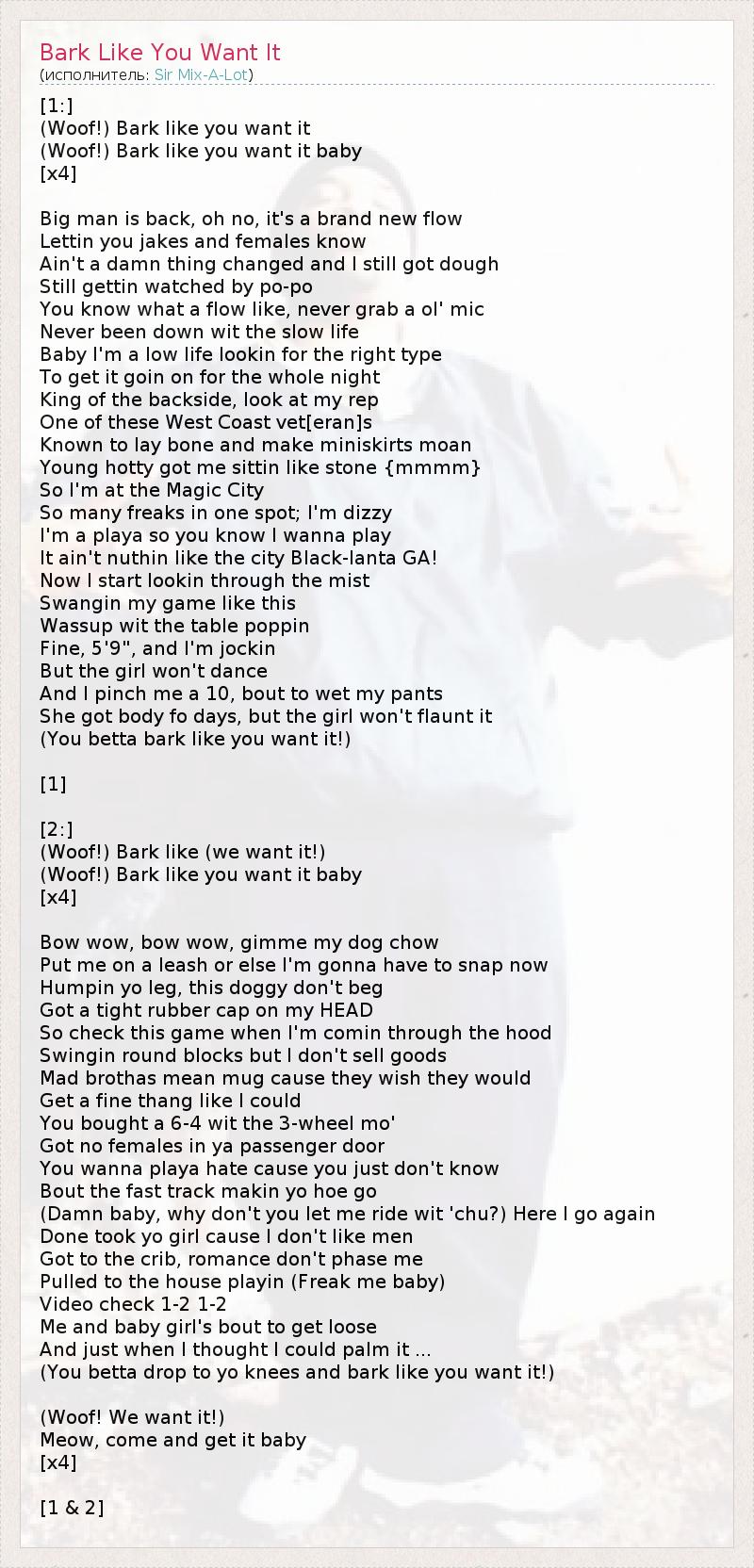 А как ты думаешь, о чем песня "Bark Like You Want It" ?